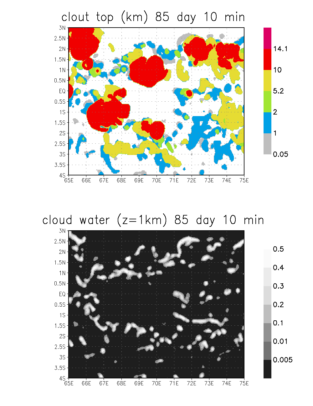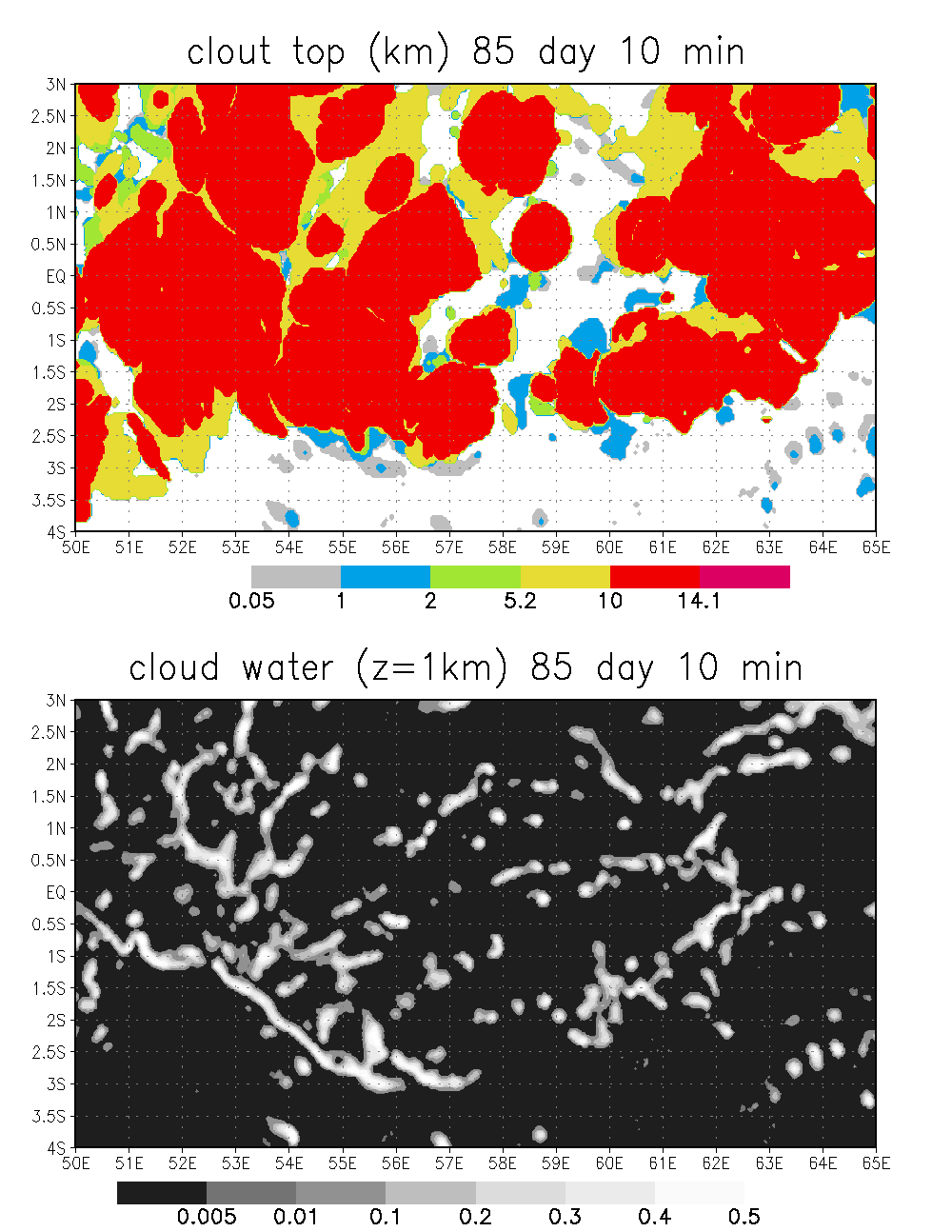 Cloud top height & shallow cloud water animations (by T.Nasuno)